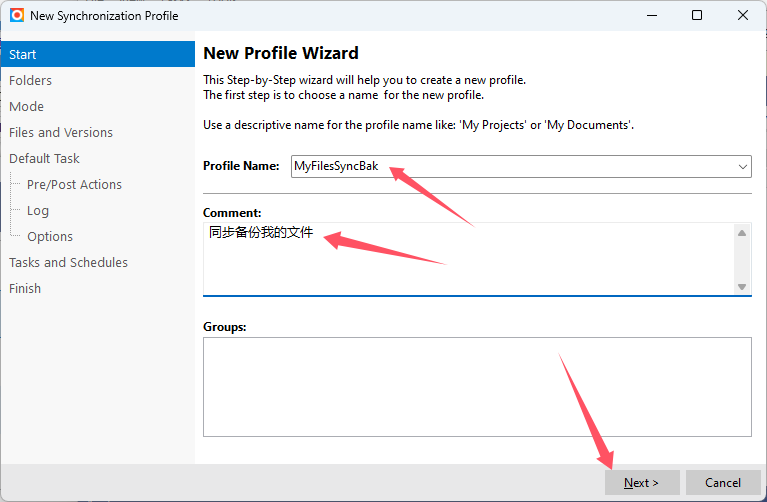4、給備份任務命名,寫上備注,然后點擊“Next