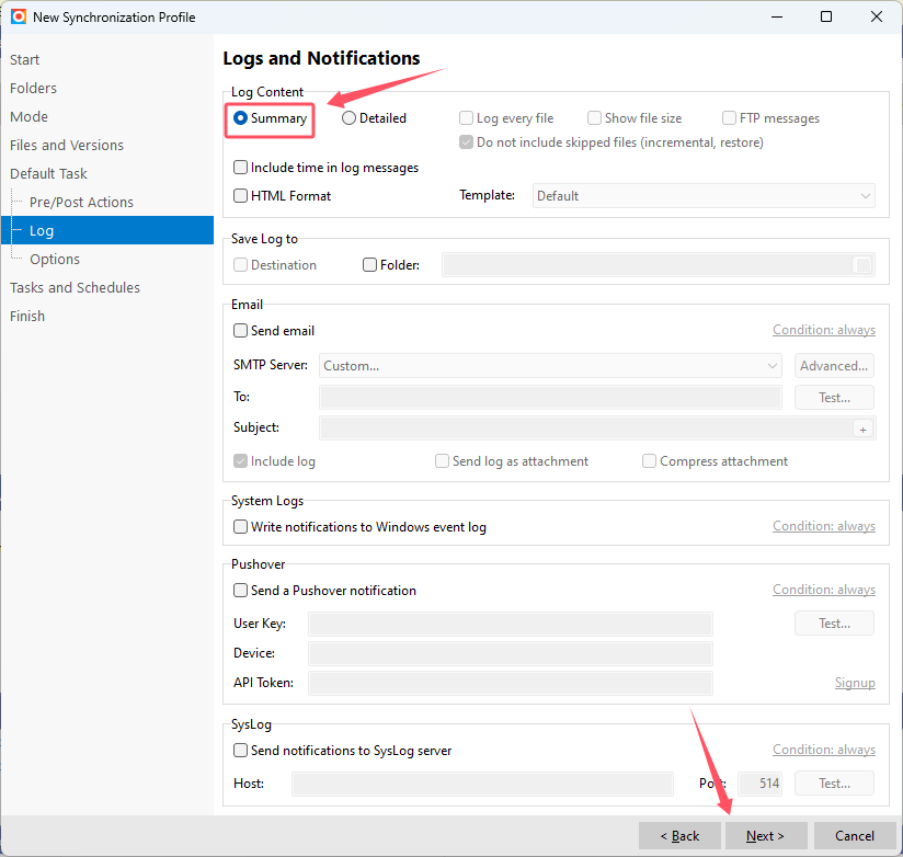11、Log,選中“Summary”(概況即可,不需要記錄詳細內容),然后點擊“Next