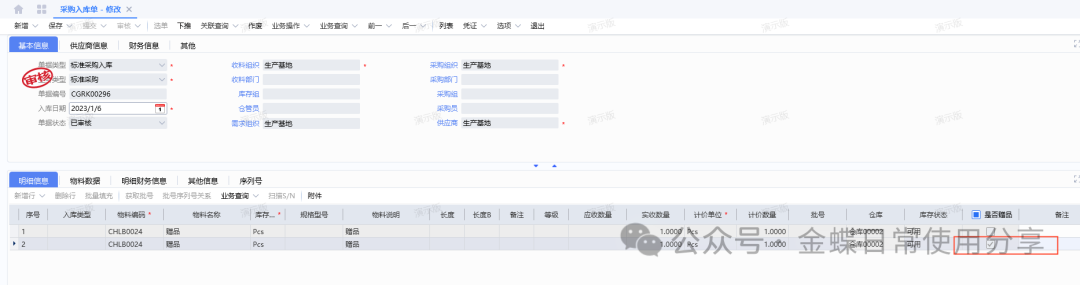 【概述】采購、銷售等業(yè)務中存在贈品業(yè)務,在金蝶云星空產(chǎn)品中有多種業(yè)務流程處理:場景1、同一物料存在正常采購入庫和贈品采購入庫兩種情況,同期存在出庫業(yè)務:采購入庫如下,贈品行勾選了“是否贈品”選項,庫存狀態(tài)為“可用”:銷售出庫如下,贈品行勾選了“是否贈品”:存貨核算后,由于該物料既有正常采購業(yè)務,又有贈品業(yè)務的情況下,同...