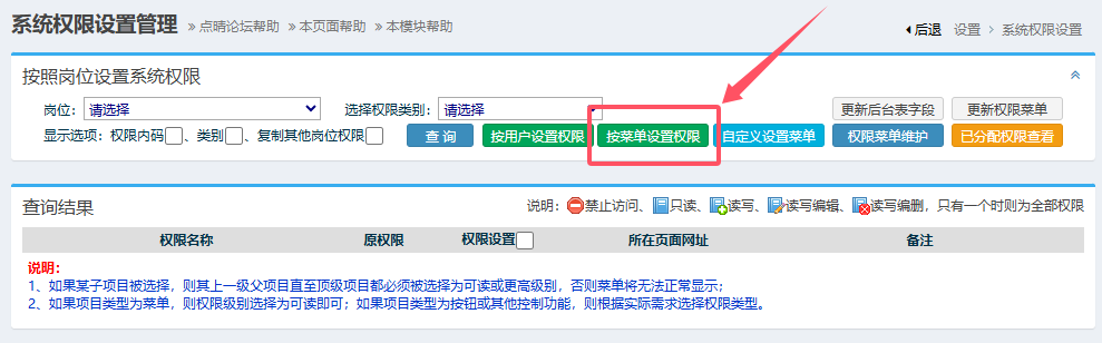 感覺(jué)現(xiàn)在系統(tǒng)權(quán)限設(shè)置很亂,很多人或崗位不應(yīng)該有某些功能操作權(quán)限,如何快速調(diào)整用戶(hù)權(quán)限? 出現(xiàn)上述問(wèn)題時(shí),可以通過(guò)菜單權(quán)限設(shè)置直接看到各個(gè)功能模塊和菜單權(quán)限分配情況,并直接修正用戶(hù)或崗位操作權(quán)限,方法如下。以管理員身份登錄點(diǎn)晴MIS系統(tǒng),進(jìn)入:設(shè)置-》系統(tǒng)維護(hù)設(shè)置-》系統(tǒng)維護(hù)管理-》系統(tǒng)權(quán)限維護(hù):然后點(diǎn)擊上面的按鈕“按...