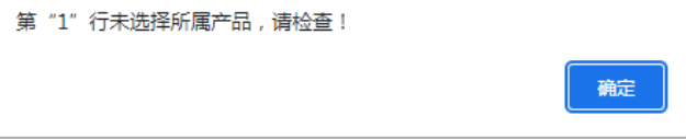 點晴ERP-彈出提示:未選擇所屬產品,請檢查情況描述:新增超領單時,點提交時彈出提示:第“”行未選擇所屬產品,請檢查。如下圖:原因:某一行的所屬產品沒有選上。如下圖:解決方法:在提示的那一行,選擇所屬產品,不能為空再提交即可。