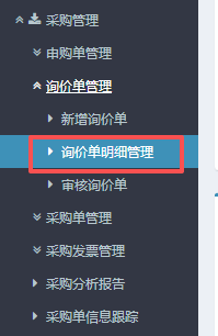 點(diǎn)晴ERP-編輯和作廢詢價(jià)單-操作流程 進(jìn)入ERP系統(tǒng)之后,在左側(cè)的功能菜單里找到“采購(gòu)管理”,點(diǎn)開(kāi)“詢價(jià)單管理”,點(diǎn)擊“詢價(jià)單明細(xì)管理”。 2.點(diǎn)擊進(jìn)入后,選中點(diǎn)擊對(duì)應(yīng)的單子,然后點(diǎn)擊編輯。 3.進(jìn)入編輯界面后,根據(jù)情況填寫單價(jià)和數(shù)量,然后點(diǎn)擊編輯訂單。 4.同樣,如果需要作廢詢價(jià)單的話,也是在再次點(diǎn)擊“...