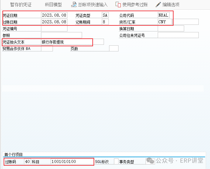 1.錄入財(cái)務(wù)憑證事務(wù)代碼:F-02,FB50點(diǎn)擊“模擬”可以查看生成的憑證分錄:點(diǎn)擊“保存”可以生成對(duì)應(yīng)的憑證:2.周期性憑證事務(wù)代碼:FBD1月底執(zhí)行周期憑證的過(guò)賬:F.14執(zhí)行之后,生產(chǎn)后臺(tái)待執(zhí)行會(huì)話(huà):3.快速輸入憑證事務(wù)代碼:F-02快速輸入科目更改輸入界面的格式:O7E64.參考憑證事務(wù)代碼:F-02周期性憑證...