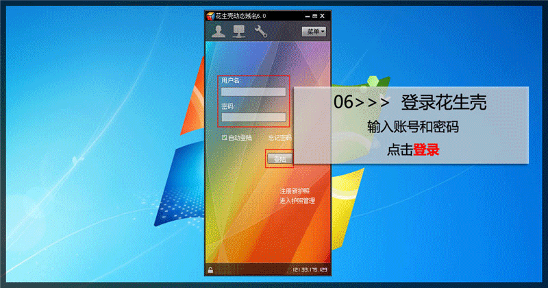 1、運(yùn)行花生殼軟件后,輸入注冊好的賬號進(jìn)行登錄;