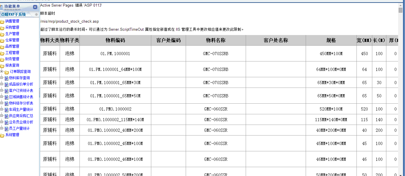 點(diǎn)晴模切ERP導(dǎo)出excel數(shù)據(jù)出錯(cuò)ASP 0113 腳本超時(shí)