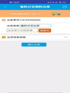 ![]() ![]() 1. 首先從手機端或手持終端上打開點晴業(yè)務(wù)通.如圖所示: ![]() 2. 點擊”備料分切領(lǐng)料出庫”,進入該界面(如圖1),對物料上的標(biāo)簽(如圖2)進行掃碼,掃碼過后會出現(xiàn)相應(yīng)的信息,操作人確認(rèn)信息無誤后點擊”確認(rèn)出庫”.