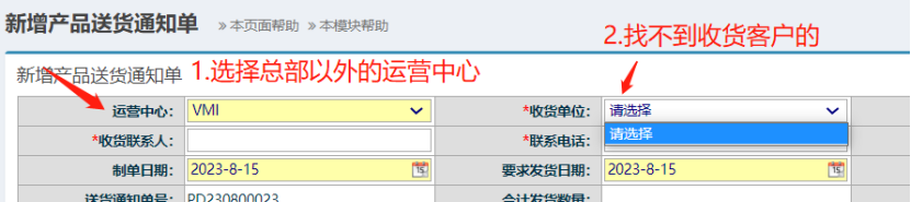 點晴模切ERP-新增送貨單時選擇其他運營中心找不到收貨客戶