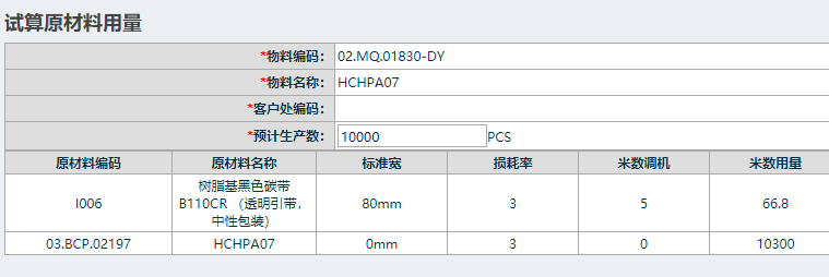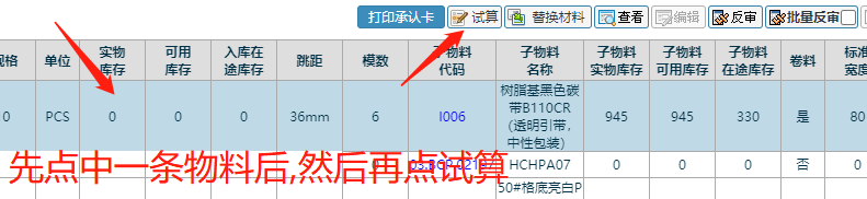 ![]() ![]() 情況描述:把BOM做好后,可以使用試算功能來(lái)確認(rèn)一下所做的BOM是否用料正確。 點(diǎn)擊進(jìn)入 如下圖: ![]() 先點(diǎn)中一條物料后,然后再點(diǎn)試算 如下圖: ![]() 輸入生產(chǎn)數(shù)量,然后在空白處點(diǎn)擊一下鼠標(biāo)右鍵,把焦點(diǎn)移后會(huì)觸發(fā)計(jì)算 如下圖: ![]() 最后材料使用的多少信息就會(huì)顯示 如下圖: ![]()