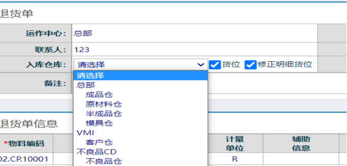 在新界面中,首先選擇入庫(kù)倉(cāng)庫(kù)