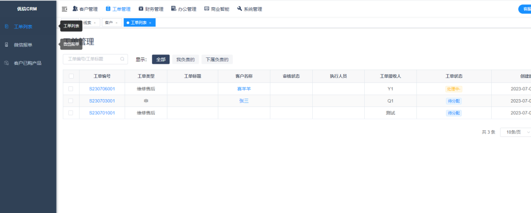 這里使用的就是工單管理了,可以提高客戶的滿意度,客戶的退單,維修都是可以從系統(tǒng)中完成的。業(yè)務(wù)覆蓋不同的部門,進(jìn)行全流程的閉環(huán)管理。