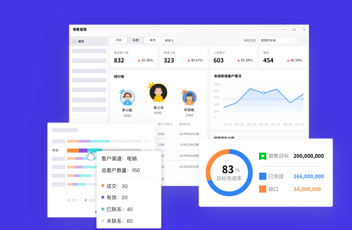 對(duì)于CRM客戶管理系統(tǒng)重要的就是銷售管理,包含銷售的目標(biāo),計(jì)劃,工作流程,跟進(jìn)記錄,工作效果,都是可以在系統(tǒng)中看見的。