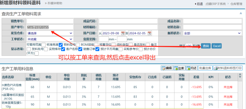 點(diǎn)晴模切ERP-如何導(dǎo)出工單的領(lǐng)料情況