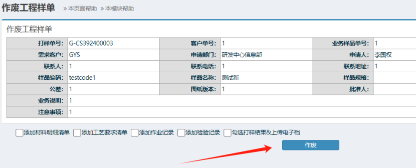 ![]() 在新窗口點作廢按鈕 如下圖: ![]() 補充說明:狀態(tài)為審核中才能允許作廢