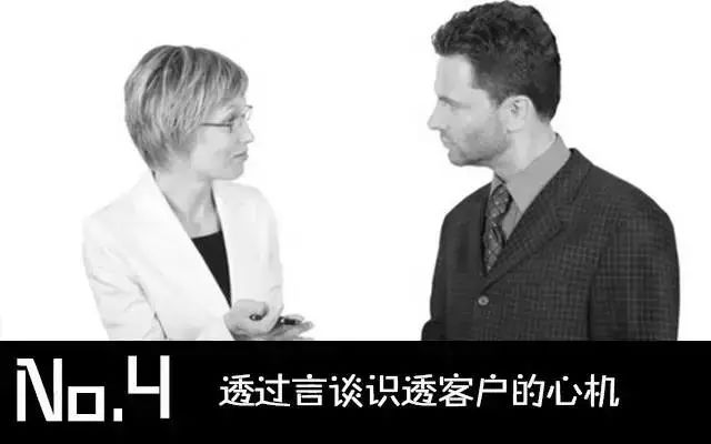 相信這個(gè)問題很多銷售都曾一度陷入沉思,為什么一個(gè)客戶跟我看了N次但就是不跟我成交呢?歸根到底其實(shí)就是自己的修行還沒到家,今天我們就來學(xué)9招銷售的技巧吧! 1、傾聽客戶需求。 2、改進(jìn)產(chǎn)品和服務(wù)。 銷售人員首先應(yīng)該扮演好聽眾,而后才是演說家。 1、讓客戶把話說完,不要打斷對(duì)方。 2、努力去體察客戶的感情。 3、全身關(guān)注地聆聽,不做無關(guān)的動(dòng)作。 4、要注意反饋。聆聽客戶的談話要注意客戶的反饋,及時(shí)驗(yàn)證自己是否已經(jīng)了解客戶的意思。 5、不必介意客戶談話時(shí)的語言和動(dòng)作特點(diǎn)。注意放在客戶談話的內(nèi)容上。 6、要注意語言以外的表達(dá)手段。 7、要使思考的速度與談話相適應(yīng)。思考的速度比講話的速度快若干倍,因此在聆聽客戶的談話時(shí),大腦要抓緊工作,勤于思考分析。 8、避免出現(xiàn)沉默的情況。 認(rèn)真傾聽,是增進(jìn)你與客戶信任的催化劑。學(xué)會(huì)傾聽客戶談話的銷售人員,會(huì)真正走進(jìn)客戶的心理,因此能夠在雙方之間建立信任和默契。 1、“潛臺(tái)詞”之一:價(jià)格比別人高,難以做決定。 2、“潛臺(tái)詞”之二:我對(duì)你不了解,風(fēng)險(xiǎn)太大,再考慮考慮。 3、“潛臺(tái)詞”之三:你說的這些不是我真正關(guān)心的。 1、對(duì)他人評(píng)頭品足的人,嫉妒心比較重。 2、說話曖昧的人,喜歡迎合他人。 3、話家常的人,想跟你套近乎。 4、避開某個(gè)話題的人,內(nèi)心潛藏著其它目的。 5、論斷別人的人,比較有心機(jī)。銷售人員不要過于聽信客戶的這種論斷,而要善于分析其中的玄機(jī),不能影響銷售。 6、惡意指責(zé)別人的人,有強(qiáng)烈的支配欲。 7、見風(fēng)使舵的人,非常容易變臉。 8、愛發(fā)牢騷的人,心眼小,不能裝下更多的事。不大可不必把他們的話放在心上,只需要按原計(jì)劃行動(dòng)即可。 9、訴諸傳統(tǒng)的人,思想保守。 在生意場(chǎng)上,銷售人員必須打起12分的精神,從客戶的每句話中找到有價(jià)值的情報(bào)。 1、在正式的場(chǎng)合發(fā)言中,客戶一開始就清喉嚨。表明他有點(diǎn)緊張。 2、說話時(shí)不斷清喉嚨,改變聲調(diào)的人,可能還有某些焦慮。 3、有的清嗓子,是因?yàn)樗麑?duì)問題還是遲疑不決,需要繼續(xù)考慮。 4、故意清喉嚨則是對(duì)別人的警告,表達(dá)一種不滿的情緒。 5、口哨聲有時(shí)是一種瀟灑或處之泰然的表示。說明客戶胸有成竹,表現(xiàn)出了十足的信心。對(duì)此銷售人員要想好對(duì)策,避免陷入對(duì)方的圈套中。 6、內(nèi)心不誠(chéng)實(shí)的人,說話聲音支支吾吾,這是心虛的表現(xiàn)。 7、內(nèi)心卑鄙的客戶,心懷鬼胎,因此聲音陰陽(yáng)怪氣,非常刺耳。 8、內(nèi)心清順的客戶,言談清涼平和。 9、有叛逆企圖的人,說話時(shí)常有幾分愧色。 10、財(cái)大氣粗的人,言辭上會(huì)有過激之聲。 11、污蔑他人的人閃爍其詞,喪失操守的人言談吞吞吐吐。 12、浮躁的人喋喋不休。 銷售人員不能只注重表面的言辭,而要聽懂客戶的畫外音,才能拿捏客戶的心理。 1、內(nèi)心平靜,聲音也就心平氣和。 2、內(nèi)心清順時(shí),就會(huì)清涼和暢的聲音。 3、速度快的人,大都能言善辯。 4、速度慢的人,則較為木訥。 人外在的聲音隨著內(nèi)心世界變化而變化,所以說:“心氣之爭(zhēng),則聲變是也?!?/span> 1、善于使用恭敬用語的客戶。多圓滑和世故。 2、多使用禮貌語的客戶。心胸比較開闊,有一定的包容力。 3、說話簡(jiǎn)潔的客戶。性格豪爽、開朗、大方。 4、說話拖拖拉拉廢話連篇的客戶。責(zé)任心不強(qiáng)。 5、說話習(xí)慣用方言的客戶。感情豐富而特別重感情。 6、善于勸慰他人的客戶。才思敏捷。 7、在談話中好為人師的客戶。喜歡賣弄,要走進(jìn)他們的內(nèi)心,根本的一點(diǎn)事滿足他們好為人師的心理。 8、肆意誣蔑他人的客戶。心胸比較狹窄,在接觸的過程中,你一定要善于掩蓋自己的才干,展露自己的普通的一面,從而避免引起對(duì)方的猜忌。 9、說話尖酸刻薄的用戶。這種人時(shí)常會(huì)遭到周圍人的厭惡?!皯B(tài)度決定一切”,語態(tài)決定一個(gè)人的性格,也決定了客戶以怎樣的心態(tài)去面對(duì)銷售人員,進(jìn)而贏得大單。 1、“我個(gè)人的想法是···”“是不是···”“能不能···”和藹可親,能做到客觀理智,冷靜分析,然后做出正確的判斷。 2、經(jīng)常使用流行詞匯的人。隨大流,喜歡浮夸,缺少個(gè)人主見和獨(dú)立感。 3、經(jīng)常使用“卻是如此”的人。大多是淺薄無知。 4、“絕對(duì)”多的人。武斷的性格顯而易見。 5、經(jīng)常使用外來語言和外語的人。虛榮心強(qiáng),愛賣弄和夸耀自己。 6、“我早就知道了”有表現(xiàn)自己的強(qiáng)烈欲望。 7、“這個(gè)···”“那個(gè)···”“啊···”說話辦事都比較小心謹(jǐn)慎。 8、“果然”的人。多自以為是,強(qiáng)調(diào)個(gè)人主張。 9、“其實(shí)”的人。表現(xiàn)欲望強(qiáng),希望能引起別人的注意。 10、“最后怎么樣怎么樣”潛在的欲望沒有得到滿足。 11、“我····”尋找各種機(jī)會(huì)強(qiáng)調(diào)自己,以引起他人的注意。 12、“真的”之類強(
