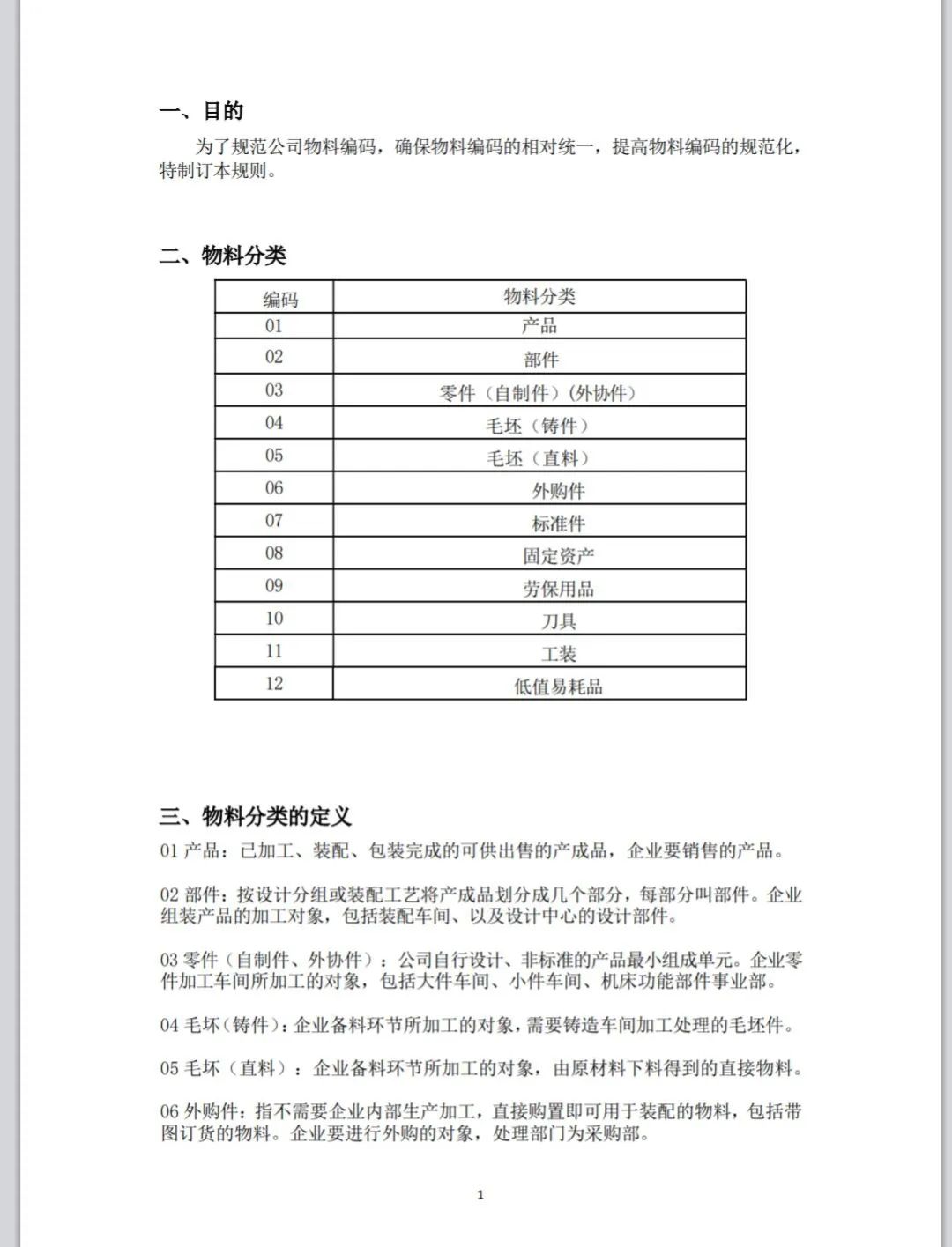 物料編碼就是用代碼來代表物料,每個物料賦予一個唯一代碼。就像人的身份證號,人名是會重復(fù)的,但是身份證號是唯一的,軟件都是通過物料代碼來讀取物料信息的。 ERP系統(tǒng)中對所有物料進(jìn)行編碼是一項(xiàng)基礎(chǔ)性的工作,不光是給物料編碼,還包括給物料分類、填寫物料名稱、物料規(guī)格型號、計(jì)量單位等信息。 筆者根據(jù)多年ERP實(shí)施的經(jīng)驗(yàn),列舉企業(yè)在物料編碼中可能會遇到的各種問題,讓大家少走彎路。 1、沒有指導(dǎo)編碼的規(guī)范性文件 很多企業(yè)都是頭一次使用ERP系統(tǒng),缺乏經(jīng)驗(yàn)指導(dǎo),一上來直接就對現(xiàn)有庫存物料進(jìn)行編碼,然后導(dǎo)入系統(tǒng)中直接使用。這種短平快的工作方式帶來的問題很多,比如編碼風(fēng)格不統(tǒng)一,編碼人員會根據(jù)自己的習(xí)慣進(jìn)行編碼,比如計(jì)量單位公斤,有人寫kg有人寫公斤有人寫KG,比如要給一個筆記本電腦命名:13代酷睿i7/4060/1T/2.5K/240HZ/8小時續(xù)航/2560*1400,究竟要寫哪些信息才算完整的表達(dá)了這個電腦?究竟哪個信息寫在前面哪個信息寫在后面?也沒個標(biāo)準(zhǔn)的書寫格式,每個信息的內(nèi)容代表什么意思,大家能不能看得懂。有些企業(yè)讓技術(shù)部負(fù)責(zé)編碼,寫出來的東西其他部門根本看不明白。 解決對策:制定物料編碼規(guī)則,編碼規(guī)則經(jīng)過各部門討論后生效。編碼規(guī)則有變化先修改規(guī)則。這樣的好處是有技術(shù)含量的工作是制定這個編碼規(guī)則,而規(guī)則制定好以后,按這個編碼規(guī)則進(jìn)行編碼的人員相對比較容易了。 編碼人員要按編碼規(guī)則進(jìn)行編碼,編碼人員崗位相對穩(wěn)定不要經(jīng)常更換。編碼人員要對編碼的物料非常熟悉,知道如何制定名稱、規(guī)格型號。 物料編碼規(guī)則示例如下: 2、沒有分類 分類的好處是方便后續(xù)使用,可以按分類進(jìn)行統(tǒng)計(jì)、查詢: 物料分類中的一級分類最好經(jīng)過各部門協(xié)商討論,因?yàn)槊總€部門對一級分類有各自的要求,比如財(cái)務(wù)從財(cái)務(wù)核算的角度考慮,倉庫從物品的用途考慮。 3、一物多碼 絕大多數(shù)情況下ERP系統(tǒng)要求一物一碼,但是企業(yè)在ERP使用中管理不完善,編碼人員對物料不熟悉或人員變動等情況,這個物料已有編碼又再增加了一個編碼,有些不常用的物料每次使用就重新搞個編碼,編碼不同名稱規(guī)格也寫的不一樣,但其實(shí)都是同一個物料。 解決的對策:申請編碼前先查詢下是否已有這個物料的編碼存在。指定一個人進(jìn)行物料編碼,或者產(chǎn)成品由一個人編,原材料一個人編碼。 有些企業(yè)編碼時會把供應(yīng)商信息編入到物料編碼中,優(yōu)點(diǎn)是避免用錯料,缺點(diǎn)是這個物料有10家供應(yīng)商就有10個編碼,而且后期維護(hù)成本很高,新增加一個供應(yīng)商就要增加很多物料編碼。 解決對策:使用物料編碼+品牌來區(qū)分,10個供應(yīng)商也只有一個物料編碼。 在特殊情況下也允許一物多碼的存在,比如客供料。假設(shè)我方有來料加工業(yè)務(wù),即客戶提供物料,我方負(fù)責(zé)加工。同一個物料10家客戶提供就會產(chǎn)生10個編碼,這個沒法像供應(yīng)商那樣編碼+供應(yīng)商,因?yàn)檫@個編碼是客戶給的編碼。 這里有個前提條件:這10家客戶提供的物料是同一個物料,是可以放在一起混合使用的。并且任何一個料號庫存發(fā)生變化后,其余9個料號庫存也要保持一致!如果有企業(yè)存在這種情況的,我們的解決辦法如下: 一、在重復(fù)物料管理表中建立這10個物料的信息,并更新庫存與物料編號1庫存一致。 二、任用何一個料號做了出入庫,其余料號都會自動做個庫存調(diào)整單使庫存始終保持一致。 4、有意義的編碼和無意義的編碼 下面哪種編碼大家任何更好呢? 400000147 YB-06-045-001 YB.06.045.001 H-35022A11M-01/A 有些企業(yè)希望能從編碼中知道這個物料的大概情況,是產(chǎn)品還是原材料,材質(zhì)信息,最后一位A代碼一版,B代碼變更過。 現(xiàn)在主流的都傾向于純數(shù)字編碼,有意義的編碼的確有利于記憶,但是對編碼員的要求很高,后期的維護(hù)成本很高。編碼就像人的身份證,除了自己記得其他人不會記得你的身份證號的,也不會通過身份證號去看你是哪里人雖然通過身份證號能看出你所在地區(qū)。我們通常會通過分類、名稱、規(guī)格型號等信息來查詢物料的。否則還需要一個巨大的對照表來解釋每個字母的意義。企業(yè)管理是把問題簡單化而不是搞得更復(fù)雜。 現(xiàn)在物料的生命周期也很短,純數(shù)字編碼幾秒就能完成一個編碼,如下圖所示,只要選擇分類即可自動產(chǎn)生編碼。 不過凡事沒有絕對的,只要適合企業(yè)就行,適當(dāng)使用字母也是可以的,比如扳手使用BS開頭,螺絲使用LS開頭。 5、沒有擴(kuò)展性 當(dāng)初編碼的時候沒有考慮太長遠(yuǎn),導(dǎo)致新的料號不能按已有的規(guī)則增加。比如4 00 00 01,四級分類01只有2位數(shù),最多99個物料現(xiàn)在不夠用了。 解決對策:制定編碼規(guī)則時對各種情況一一舉例說明,大類盡量合并,種類區(qū)分明確,小類盡量細(xì)分。流水號可以多留幾位,編碼長一點(diǎn)不會影響使用效率的,筆者建議對于