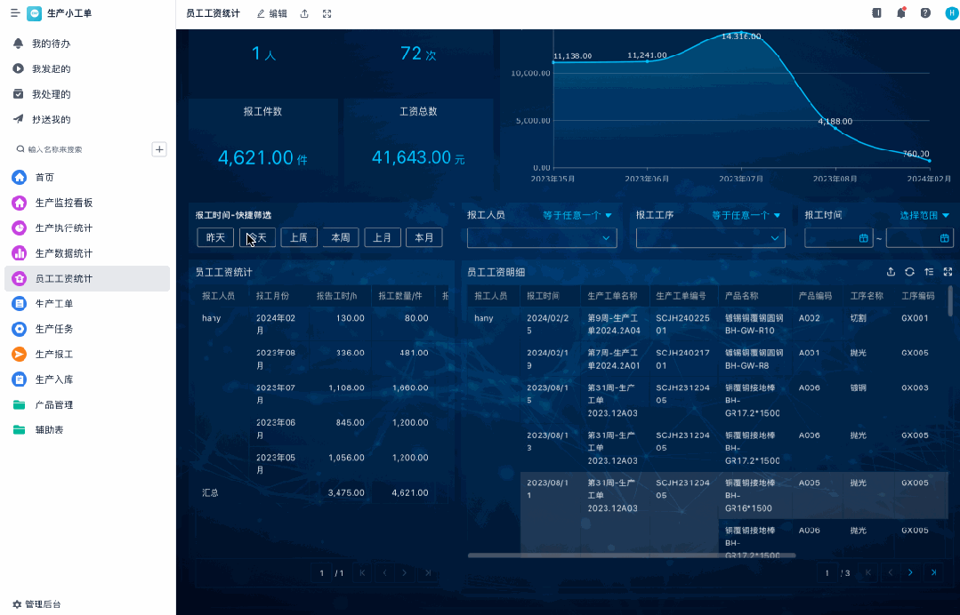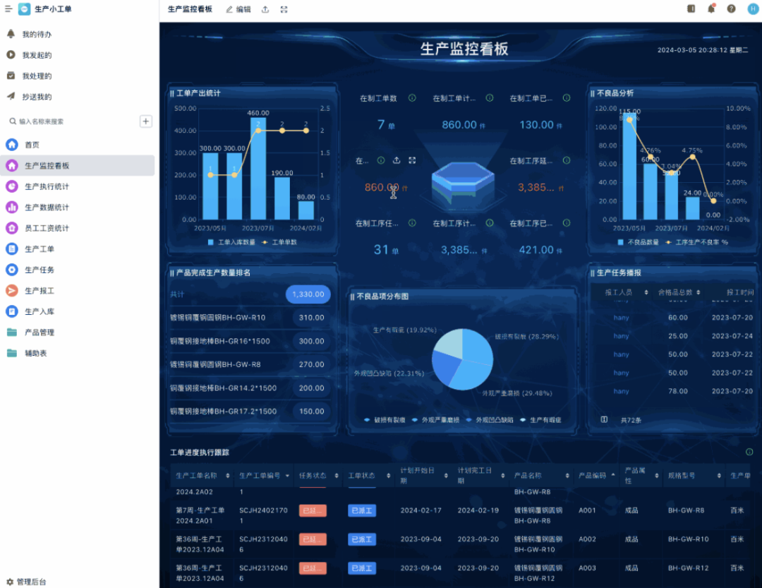 生產(chǎn)小工單是什么?生產(chǎn)小工單是如何與生產(chǎn)管理緊密相連的?生產(chǎn)小工單的結(jié)構(gòu)是怎樣的?生產(chǎn)小工單又有著什么樣的功能呢?本文將從零開始,深入解析生產(chǎn)小工單。全文干貨滿滿,不容錯過,建議收藏!! 在了解生產(chǎn)小工單之前,首先要知道什么是生產(chǎn)管理! 一、什么是生產(chǎn)管理1、生產(chǎn)管理的定義生產(chǎn)管理(Production Management)是計劃、組織、協(xié)調(diào)、控制生產(chǎn)活動的綜合管理活動。內(nèi)容包括生產(chǎn)計劃、生產(chǎn)組織以及生產(chǎn)控制。通過合理組織生產(chǎn)過程,有效利用生產(chǎn)資源,經(jīng)濟合理地進行生產(chǎn)活動,以達(dá)到預(yù)期的生產(chǎn)目標(biāo)。 2、生產(chǎn)管理的六大核心生產(chǎn)管理涉及到多個核心方面的活動和功能,六大核心內(nèi)容有:生產(chǎn)計劃和排程、物料采購和供應(yīng)鏈管理、生產(chǎn)過程監(jiān)控、生產(chǎn)設(shè)備和資源管理、質(zhì)量管控、績效評估和改進。 (1)生產(chǎn)計劃和排程: · 制定長期、中期和短期的生產(chǎn)計劃,根據(jù)市場需求和資源情況進行合理安排。 · 進行生產(chǎn)排程,確定生產(chǎn)任務(wù)的順序、時間表和優(yōu)先級。 (2)物料采購和供應(yīng)鏈管理: · 確定物料清單和采購需求,制定采購計劃和采購策略。 · 與供應(yīng)商建立穩(wěn)定的合作關(guān)系,確保物料的及時供應(yīng)和質(zhì)量可控。 (3)生產(chǎn)過程監(jiān)控 · 實時監(jiān)控生產(chǎn)過程中的關(guān)鍵指標(biāo)和參數(shù),如生產(chǎn)進度、設(shè)備運行狀態(tài)、生產(chǎn)質(zhì)量等。 (4)生產(chǎn)設(shè)備和資源管理 · 對生產(chǎn)設(shè)備進行有效管理和維護,確保設(shè)備的穩(wěn)定運行和壽命。 · 合理規(guī)劃和利用生產(chǎn)資源,包括人力、設(shè)備、原材料等,以提高資源利用率和生產(chǎn)效率。 (5)質(zhì)量管控: · 制定質(zhì)量標(biāo)準(zhǔn)和檢驗程序,確保產(chǎn)品符合質(zhì)量要求和客戶需求。 (6)績效評估和改進: · 設(shè)立生產(chǎn)績效評估體系,包括生產(chǎn)效率、質(zhì)量指標(biāo)、成本控制等方面的評估指標(biāo),對生產(chǎn)績效進行定期評估和分析,發(fā)現(xiàn)問題和瓶頸,并制定改進措施。 3、生產(chǎn)管理的發(fā)展歷史生產(chǎn)管理歷史時可以分為以下四個歷史階段, 1、手工生產(chǎn)階段 (1)生產(chǎn)管理情況: · 在手工生產(chǎn)階段,生產(chǎn)活動主要依靠人力和手工操作。 生產(chǎn)資源的調(diào)配和利用主要靠人工調(diào)度,生產(chǎn)過程的監(jiān)控較為有限,主要依賴于工人的觀察和手工記錄。 (2)存在的問題: 生產(chǎn)效率低下,生產(chǎn)過程不穩(wěn)定,生產(chǎn)成本高,質(zhì)量難以保證,無法滿足市場需求。 2、傳統(tǒng)生產(chǎn)管理階段 (1)生產(chǎn)管理情況: · 在傳統(tǒng)生產(chǎn)管理階段,企業(yè)開始引入一些基本的生產(chǎn)計劃和排程方法,逐漸實現(xiàn)生產(chǎn)活動的分工和專業(yè)化。生產(chǎn)過程中,雖然出現(xiàn)了一定程度的分工和專業(yè)化,但仍主要依賴于手工操作和簡單的管理方法。 (2)存在的問題: 生產(chǎn)計劃和排程不夠科學(xué)和精細(xì),資源利用率低,生產(chǎn)過程缺乏監(jiān)控和控制,質(zhì)量管理不規(guī)范,效率有限。 3、科學(xué)管理階段 (1)生產(chǎn)管理情況: · 企業(yè)開始采用諸如泰勒的科學(xué)管理和福特的流水線生產(chǎn)等先進管理理論和方法。生產(chǎn)計劃和排程逐漸系統(tǒng)化,不再完全依賴于工人經(jīng)驗,而是采用科學(xué)分析和數(shù)據(jù)支持進行安排。 (2)存在的問題: 雖然生產(chǎn)效率有所提高,但仍存在資源浪費、生產(chǎn)過程不靈活、質(zhì)量控制不嚴(yán)格等問題,無法適應(yīng)市場變化和客戶需求多樣化的挑戰(zhàn)。 4、現(xiàn)代化生產(chǎn)管理階段 (1)生產(chǎn)管理情況: · 企業(yè)引入了信息技術(shù)、智能化設(shè)備和先進的管理理念,實施了全面的生產(chǎn)計劃、供應(yīng)鏈管理、質(zhì)量管理和績效評估等系統(tǒng)化管理措施。生產(chǎn)計劃和排程不再依賴于簡單的手工經(jīng)驗,而是通過信息技術(shù)支持下的數(shù)據(jù)分析和預(yù)測進行精準(zhǔn)安排。 (2)存在的問題: 雖然生產(chǎn)管理水平大幅提升,但仍面臨著信息化水平不足、供應(yīng)鏈協(xié)同性差、質(zhì)量管控全面性不夠、績效評估指標(biāo)單一等問題,需要不斷改進和完善。 二、生產(chǎn)小工單與生產(chǎn)管理的聯(lián)系1、為什么要有生產(chǎn)小工單?現(xiàn)代生產(chǎn)管理面臨諸多挑戰(zhàn),主要包括生產(chǎn)過程的復(fù)雜化、資源調(diào)度的困難以及對質(zhì)量管理的更高要求。 (1) 生產(chǎn)進度難追蹤· 在沒有有效的生產(chǎn)管理工具的情況下,企業(yè)難以對生產(chǎn)線的實時情況進行監(jiān)控。這導(dǎo)致了生產(chǎn)進度的延誤,進而影響到產(chǎn)品的交付和客戶的滿意度。 (2) 生產(chǎn)過程不透明· 生產(chǎn)過程中的每個環(huán)節(jié)都是相互關(guān)聯(lián)的,任何一個環(huán)節(jié)的失誤都可能導(dǎo)致整個生產(chǎn)線的停工。但由于缺乏有效的監(jiān)控手段,企業(yè)往往難以及時發(fā)現(xiàn)問題,導(dǎo)致