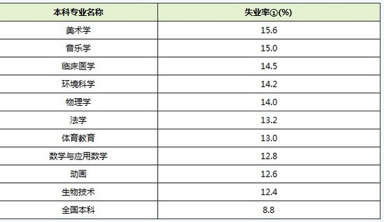 2010本科畢業(yè)生失業(yè)率最高10大專業(yè)