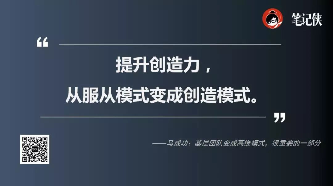 基層團隊變成高維模式,很重要的就是提升創(chuàng)造力,從服從模式變成創(chuàng)造模式。
