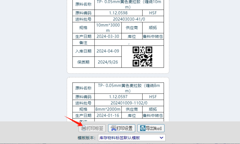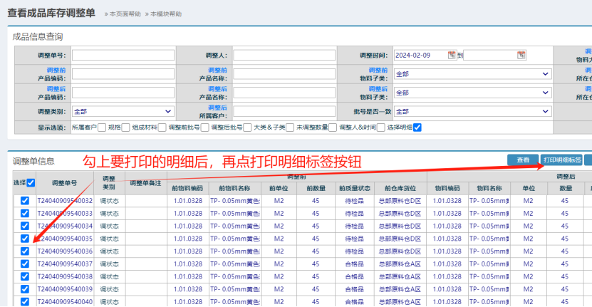 勾上明細(xì),再點(diǎn)擊打印標(biāo)簽按鈕