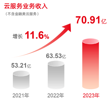 2023年,用友的云服務收入是70.91億,占總收入72.4%。