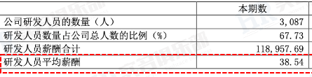 金山辦公的研發(fā)投入占營收比是最高的,超過39%。 金山辦公在財報直接披露研發(fā)人員的平均薪酬。 2023年研發(fā)人員平均薪酬38.54萬,2022年是37.76萬。