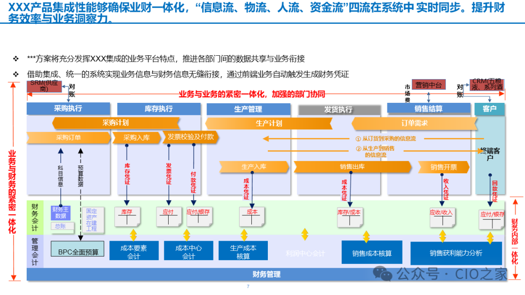 業(yè)財一體化是企業(yè)數(shù)字化轉(zhuǎn)型浪潮下的新管理戰(zhàn)略,即業(yè)務(wù)流程與財務(wù)流程的一體化。這一戰(zhàn)略實現(xiàn)了業(yè)務(wù)與財務(wù)之間的統(tǒng)一管理,打通了業(yè)務(wù)和財務(wù)之間的壁壘。這種管理方式很大程度上解決了以往部門之間數(shù)據(jù)不流通、財務(wù)結(jié)算緩慢、業(yè)務(wù)資金流轉(zhuǎn)無法監(jiān)控等諸多問題。并且通過業(yè)財一體化戰(zhàn)略,業(yè)務(wù)部門能夠可以利用財務(wù)數(shù)據(jù)對其運營進行指導和優(yōu)化,從而進一步為企業(yè)創(chuàng)造更多利潤空間。