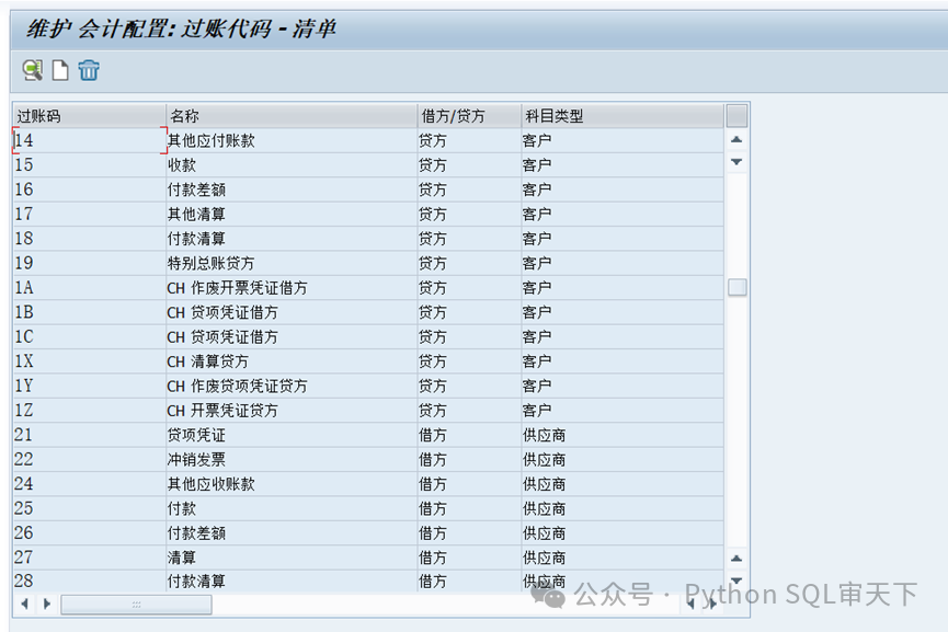 在SAP系統(tǒng)里錄入憑證時,你會發(fā)現(xiàn)有個叫做記賬碼的東西。那么這個記賬碼到底有什么作用呢?我最初在學(xué)習(xí)SAP系統(tǒng)的時候,也是被搞得云里霧里半空里摸不著頭腦,后來接觸多了就慢慢習(xí)慣了。為了使后來人在學(xué)習(xí)該內(nèi)容時不那么難理解,我簡單做了一個總結(jié),希望對您有所幫助。 記賬碼,英文是Posting Key,又稱PK碼或過賬碼。 記賬碼由兩位阿拉伯?dāng)?shù)字或字母組成,用來區(qū)分各類記賬事項,同時控制著行項目記賬的賬戶類型、借方還是貸方記賬以及行項目輸入時的界面布局(字段狀態(tài)組)等。這里所說的界面布局,你可以簡單地理解為界面上顯示了哪些字段。 SAP系統(tǒng)預(yù)設(shè)了50余種記賬碼。我們可以通過事務(wù)碼OB41來查看系統(tǒng)預(yù)設(shè)的所有記賬碼。 關(guān)于科目類型這一列,有時你可能在系統(tǒng)中看到的都是一個字母,這個你大可不必?fù)?dān)心,我也給你總結(jié)如下: