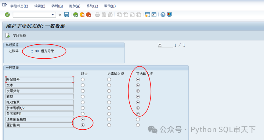 知道了系統(tǒng)中預(yù)設(shè)的記賬碼的含義后,下一步我們就要進一步搞清楚這些記賬碼是如何控制行項目賬戶類型和借貸方規(guī)則的。 這里就以常用的記賬碼40來說明: 我們可以看到:記賬碼40代表借方分錄,借/貸標(biāo)識為借方,科目類型為總帳科目,沖銷記賬代碼為50。 單擊維護字段狀態(tài)按鈕,我們可以查看每個字段組下的字段的狀態(tài)設(shè)置。 如一般數(shù)據(jù),設(shè)置了哪些字段是隱藏的,哪些字段是必須輸入的,哪些字段是可選輸入的。其他字段組也是一樣的道理。 在實際輸入憑證時,憑證行項目的字段狀態(tài)是同時受記賬碼和科目的字段狀態(tài)組控制的。如果一個字段狀態(tài)組要求可選,另一個要求必輸,那么最終結(jié)果將是必輸,也就是說兩者取最嚴(yán)格的。這一點尤其要注意。 點晴模切ERP更多信息:http://moqie.clicksun.cn,聯(lián)系電話:4001861886 該文章在 2024/4/19 15:46:46 編輯過 |