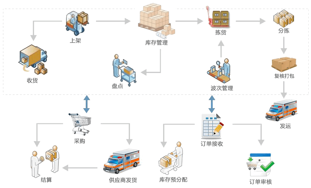 1、庫存無法實時準確,導(dǎo)致采購計劃不合理化,某件商品少采多采的情況時有發(fā)生,庫存結(jié)構(gòu)十分不合理;2、倉庫業(yè)務(wù)流程不規(guī)范,人工揀貨,打單就算出庫,缺乏二次審核環(huán)節(jié),錯發(fā)貨、漏發(fā)貨時有發(fā)生;3、缺乏庫位管理,無法確定貨物坐標(biāo),找貨需要員工記憶,揀貨、盤點效率下,出錯率高;4、所有環(huán)節(jié)需要人工寫單記錄,單據(jù)多,查找起來很不方便,而且還需要人工錄入到表格中,工作量大,易出錯;5、人員工作量無法考核,揀貨、復(fù)核、上架工作量無法統(tǒng)計,員工“偷懶”事件時常發(fā)生,情況嚴重。