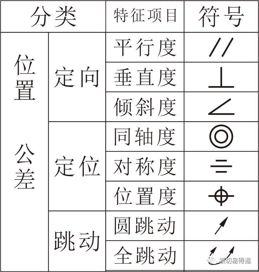 平面度:符號為一平行四邊形,是限制實際平面對理想平面變動量的一項指標(biāo)。它是針對平面發(fā)生不平而提出的要求。 圓度:符號為一圓(○),是限制實際圓對理想圓變動量的一項指標(biāo)。它是對具有圓柱面(包括圓錐面、球面)的零件,在一正截面(與軸線垂直的面)內(nèi)的圓形輪廓要求。 圓柱度:符號為兩斜線中間夾一圓(/○/),是限制實際圓柱面對理想圓柱面變動量的一項指標(biāo)。它控制了圓柱體橫截面和軸截面內(nèi)的各項形狀誤差,如圓度、素線直線度、軸線直線度等。圓柱度是圓柱體各項形狀誤差的綜合指標(biāo)。 線輪廓度:符號為一上凸的曲線(⌒),是限制實際曲線對理想曲線變動量的一項指標(biāo)。它是對非圓曲線的形狀精度要求。 面輪廓度:符號是用一短線將線輪廓度的符號下面封閉,是限制實際曲面對理想曲面變動量的一項指標(biāo)。它是對曲面的形狀精度要求。 位置公差包括平行度、垂直度及傾斜度三種,包含8種公差符號。