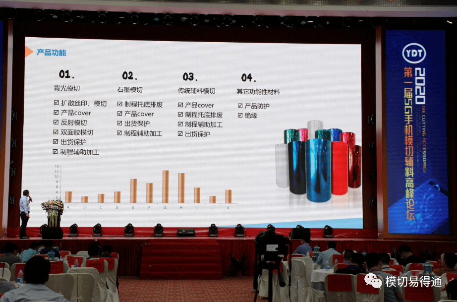 此次謝先生著重探討了PET保護(hù)膜在5G通訊設(shè)備上的應(yīng)用特點及背光模切、石墨模切、傳統(tǒng)輔料模切、其他功能性材料在5G手機輔料應(yīng)用。 7、金紫薇新材料何佩佩女士精彩分享