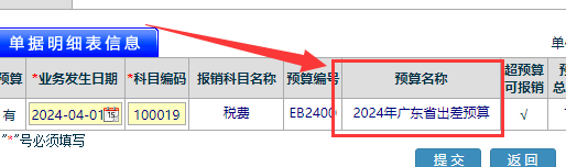 點晴EBR報銷申請單明細如何顯示預(yù)算名稱?