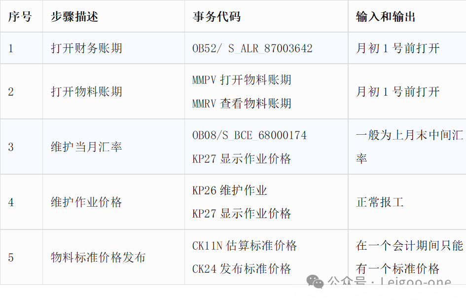 CK11N估算標(biāo)準(zhǔn)價(jià)格,CK24發(fā)布標(biāo)準(zhǔn)價(jià)格(或者CK40N批量估算及發(fā)布)。使用標(biāo)準(zhǔn)價(jià)計(jì)價(jià)的物料,在一個(gè)會(huì)計(jì)期間只能有一個(gè)標(biāo)準(zhǔn)價(jià)格,并且只能在月初發(fā)布標(biāo)準(zhǔn)價(jià)格。二、FI月結(jié)