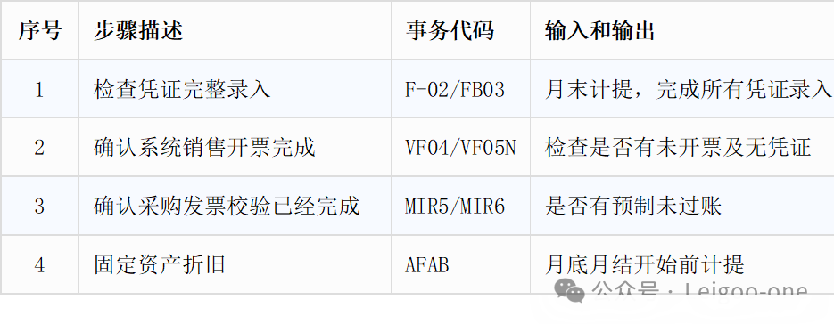 月底計(jì)提,尤其是稅費(fèi)、工資等相關(guān)總賬內(nèi)容,如果財(cái)務(wù)上區(qū)分了核算工資、稅費(fèi)等會(huì)計(jì),可以讓負(fù)責(zé)的同事分開進(jìn)行,必須要在分?jǐn)偡峙淝颁浫胪瓿?,工資涉及到制造費(fèi)用分?jǐn)偡峙?/span>。檢查當(dāng)期憑證是否全部錄入完成:FB03查看憑證清單,檢查當(dāng)期各類憑證是否錄入完成,是否存在對(duì)成本有影響的費(fèi)用沒有錄入。如果已經(jīng)結(jié)賬后發(fā)現(xiàn)還有費(fèi)用沒有錄入,只有反結(jié)賬,錄入費(fèi)用后重新結(jié)賬。2、確認(rèn)系統(tǒng)銷售開票完成