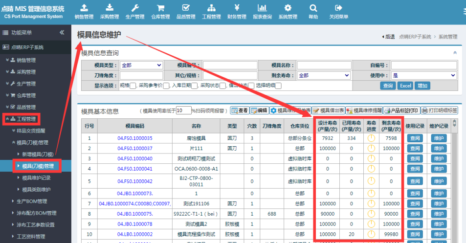 1、自動(dòng)計(jì)算刀模壽命,并對快到期刀模提出預(yù)警;