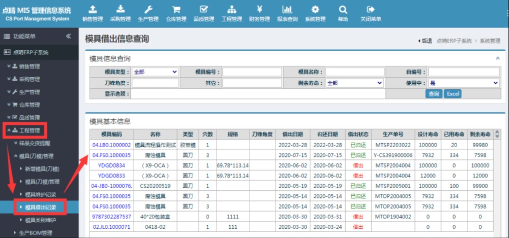 點(diǎn)晴ERP中主要提供了如下刀模管理功能: