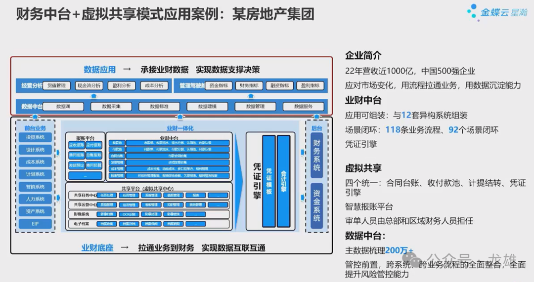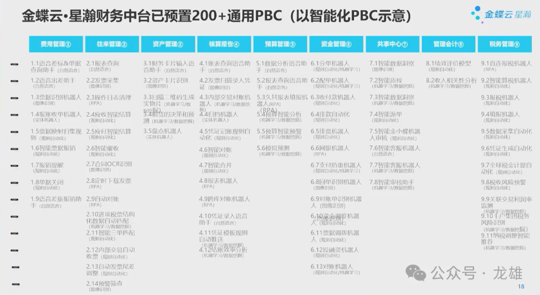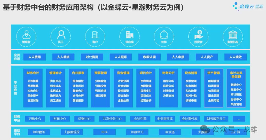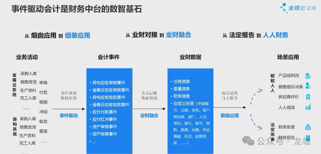 什么是金蝶云·星瀚?EBC是什么含義? 金蝶云·星瀚,是專為大企業(yè)設(shè)計的新一代數(shù)字化管理云服務(wù)、大型企業(yè)EBC,旨在憑借千億級高性能和世界一流企業(yè)的實踐,幫助大企業(yè)實現(xiàn)可信的數(shù)字化系統(tǒng)升級,打造韌性企業(yè),支撐商業(yè)創(chuàng)新和管理重構(gòu),已成為500強企業(yè)的新選擇。EBC是由Gartner與金蝶共同倡導的下一代ERP,被定義為企業(yè)管理從MRP、MRPⅡ到ERP后的第四代變革。EBC由一個個以業(yè)務(wù)為中心的模塊化、自治、可編排和可發(fā)現(xiàn)的PBC(可打包的業(yè)務(wù)能力,Packaged Business Capability)組成,通過將一個個業(yè)務(wù)場景變成一個個顆?;摹胺e木”,對“積木”進行不同的組裝,打造一組新的應(yīng)用程序以應(yīng)對外部環(huán)境的變化,充分增強組織韌性。 金蝶云·星瀚與金蝶云·蒼穹是什么關(guān)系? 2016年,蒼穹啟動大規(guī)模研發(fā);2018年,金蝶云·蒼穹正式發(fā)布,開啟新時代;2021年5月,金蝶云·蒼穹品牌裂變:蒼穹PaaS平臺、星瀚SaaS應(yīng)用。金蝶云·星瀚基于金蝶自主研發(fā)的、可組裝的企業(yè)級蒼穹PaaS平臺,是服務(wù)于大型企業(yè)的EBC,由可打包的PBC構(gòu)成,旨在為大企業(yè)打造快速應(yīng)變的數(shù)字化平臺,增強企業(yè)韌性。 金蝶云·星瀚學習成長地圖1.0 https://vip.kingdee.com/school/detail/373771272708539904?productLineId=2 金蝶云星瀚V6.0產(chǎn)品新特性合輯 https://club.kdcloud.com/article/547057882987250176?productLineId=2&isKnowledge=2&lang=zh-CN 星瀚V6.0資料匯總 https://club.kdcloud.com/article/552872808708101888?productLineId=2&lang=zh-CN 金蝶云蒼穹的中臺除了財務(wù)中臺,還包括 供應(yīng)鏈中臺,制造中臺和人力中臺,今天我們主要介紹 財務(wù)中臺 財務(wù)數(shù)字化轉(zhuǎn)型推動企業(yè)高質(zhì)量發(fā)展 基礎(chǔ)資源數(shù)字化:數(shù)據(jù)中臺 企業(yè)的優(yōu)勢在于統(tǒng)籌調(diào)配資源,降低公司運營的內(nèi)外部成本和緩解融資約束。按照企業(yè)投入資源要素來看,基礎(chǔ)資源包括人力、土地、資金、設(shè)備、資本、技術(shù)、數(shù)據(jù)等各類資源。在基礎(chǔ)資源數(shù)字化背景下,集團內(nèi)部調(diào)動資金資源、資產(chǎn)資源、設(shè)備資源、技術(shù)資源、數(shù)據(jù)資源等,可有效降低運營成本和緩解融資約束。 財務(wù)管控數(shù)字化:業(yè)財融合 財務(wù)管控數(shù)字化核心在于監(jiān)督和控制,關(guān)鍵在于資源配置。按照管理會計的“預(yù)測、決策、控制、分析、評價”過程,以財務(wù)思維定體系、以管理思維定指標,從經(jīng)營預(yù)算、投資預(yù)算、資金預(yù)算入手并向下延伸到采購生產(chǎn)、銷售,最后以資產(chǎn)負債表、利潤表、現(xiàn)金流量表和KPI指標表收口,并與費用報銷、會計核算、數(shù)據(jù)分析緊密銜接。 決策支持數(shù)字化:價值地圖 充分發(fā)揮財務(wù)作為天然數(shù)據(jù)中心的優(yōu)勢,推動財務(wù)管理從信息化向數(shù)字化轉(zhuǎn)型,實現(xiàn)以核算場景為基礎(chǔ)向業(yè)務(wù)場景為核心轉(zhuǎn)換 財務(wù)部門作為企業(yè)經(jīng)濟活動的歸口管理部門,所有經(jīng)濟活動數(shù)據(jù)(包括財務(wù)數(shù)據(jù)和非財務(wù)數(shù)據(jù))都會匯聚到財務(wù)部門。財務(wù)數(shù)字化轉(zhuǎn)型發(fā)揮財務(wù)數(shù)據(jù)價值空間將是巨大的,也是未來發(fā)展重要趨勢和方向。 依托財務(wù)中臺,加快建設(shè)世界一流財務(wù)數(shù)智體系 對國資委 的 世界一流財務(wù)管理體系指導意見關(guān)于財務(wù)數(shù)智化的解讀,主要包含以下5個方面 (縱橫貫通,四化一體,數(shù)據(jù)治理,創(chuàng)新拓展,自主可控) 什么是財務(wù)中臺:發(fā)展和價值定位 財務(wù)中臺是應(yīng)對財務(wù)數(shù)字化轉(zhuǎn)型加速的新一代財務(wù)共享平臺。財務(wù)中臺依托中臺架構(gòu)和數(shù)字化技術(shù)構(gòu)建實時原生的業(yè)財融合數(shù)據(jù)集市,實現(xiàn)財務(wù)在不同行業(yè)不同領(lǐng)域的服務(wù)能力沉淀、共享和快速組裝,本質(zhì)是通過財務(wù)與業(yè)務(wù)解耦的方式實現(xiàn)財務(wù)能力的共享。 財務(wù)中臺和傳統(tǒng)財務(wù)共享的關(guān)系 如何快速把其他廠商的系統(tǒng)單據(jù)對接生成憑證是財務(wù)核領(lǐng)域的一大難題,基于事件驅(qū)動的金蝶云·星瀚會計引擎能很好地解決這個問題。 能力中心是財務(wù)中臺的驅(qū)動內(nèi)核,包括各種規(guī)則引擎,AI引擎和RPA等技術(shù)融合在一起,實現(xiàn) 應(yīng)用服務(wù)(PBC)=API+能力+數(shù)據(jù)+流程編排+用戶體驗 點開可以查看詳細的不通過原因 下圖的 PBC是指“可打包的業(yè)務(wù)能力”(Packagable Business Capability) 財務(wù)中臺+財務(wù)共享的應(yīng)用案例 海信集團財務(wù)轉(zhuǎn)型及中臺實踐目標 金蝶云星瀚ERP的 應(yīng)用服務(wù)(PBC)=API+能力+數(shù)據(jù)+流程編排+UX 是一種集成的服務(wù)模式,其中包含以下幾個關(guān)鍵組成部分: