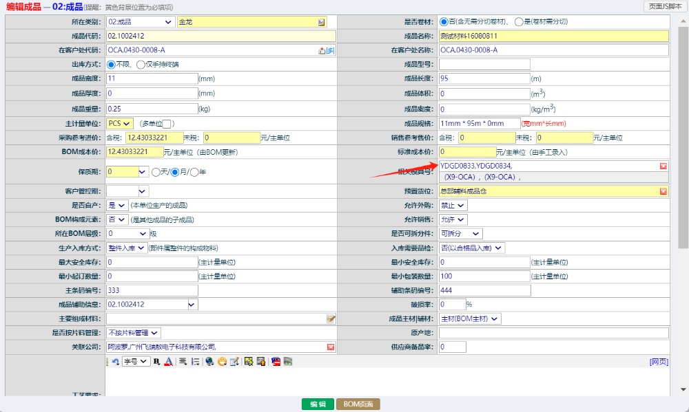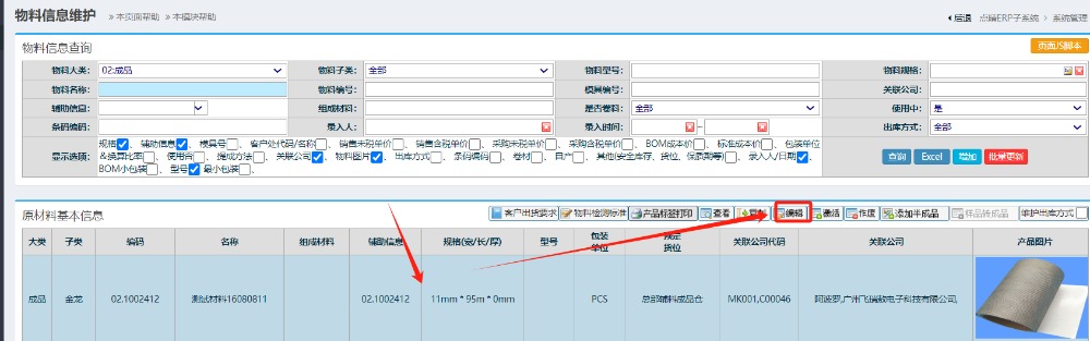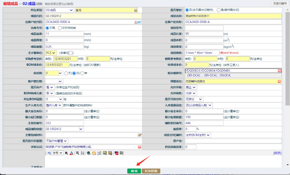 進(jìn)入后,選中對應(yīng)的成品,點(diǎn)擊編輯按鈕