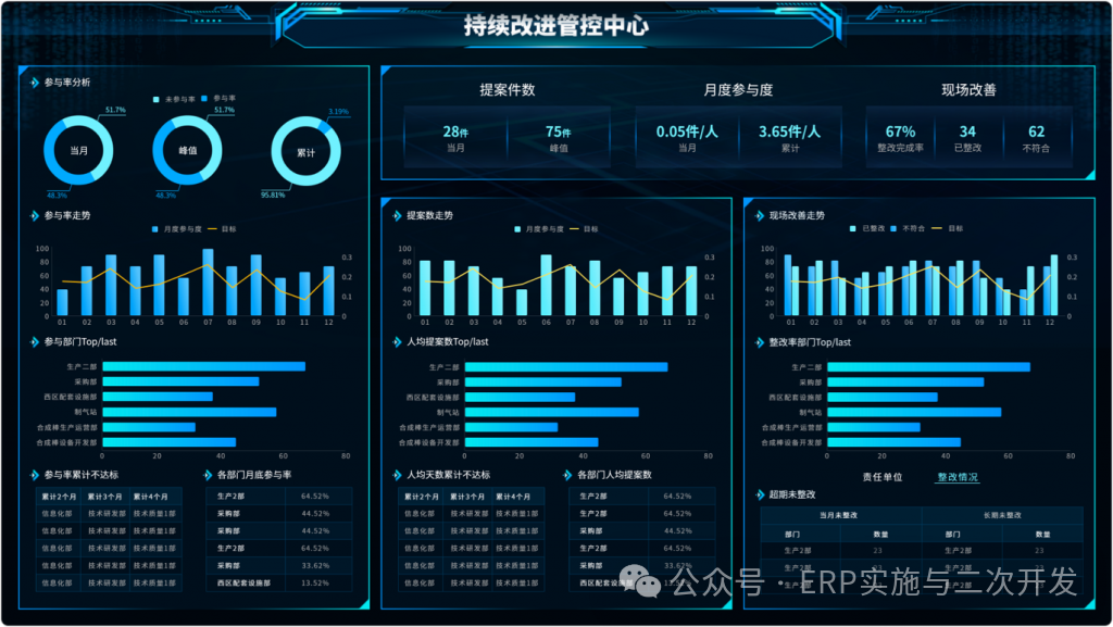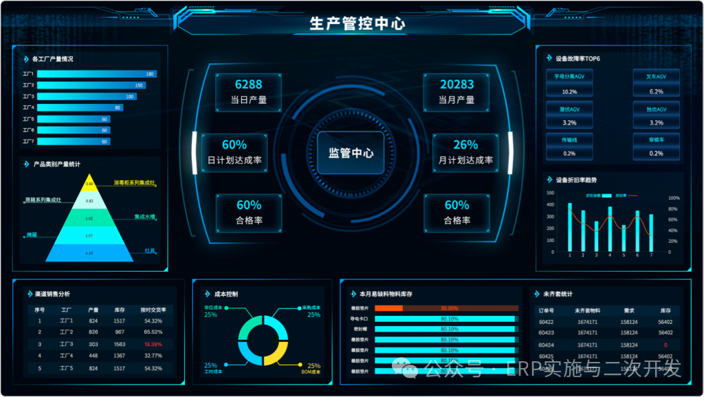 生產(chǎn)管理看板是一種廣泛應(yīng)用于生產(chǎn)和制造領(lǐng)域的可視化管理工具,旨在提高生產(chǎn)流程的透明度、效率和質(zhì)量。看板源自于日本的精益生產(chǎn)(Lean Manufacturing)和豐田生產(chǎn)系統(tǒng)(Toyota Production System)的理念,已經(jīng)被許多制造和生產(chǎn)企業(yè)采用,并在各行各業(yè)取得成功。本文將詳細(xì)介紹生產(chǎn)管理看板的定義、作用、設(shè)計(jì)和實(shí)施方法。 一、什么是生產(chǎn)管理看板?生產(chǎn)管理看板是一種物理或電子工具,通常是一個(gè)大型面板或數(shù)字顯示屏,用于在生產(chǎn)車間或辦公室中以圖形和文字方式呈現(xiàn)關(guān)于生產(chǎn)流程的關(guān)鍵信息。這些信息可能包括生產(chǎn)計(jì)劃、任務(wù)狀態(tài)、庫(kù)存水平、問(wèn)題和改進(jìn)建議等。生產(chǎn)管理看板的主要目標(biāo)是提供實(shí)時(shí)、可視化的數(shù)據(jù),以便生產(chǎn)團(tuán)隊(duì)能夠迅速了解生產(chǎn)狀況,做出決策并解決問(wèn)題。 二、生產(chǎn)管理看板的作用1. 提高透明度: 生產(chǎn)管理看板為團(tuán)隊(duì)提供了實(shí)時(shí)的信息,使每個(gè)人都了解生產(chǎn)流程的狀態(tài)。這有助于消除信息不對(duì)稱,促進(jìn)更好的溝通和協(xié)作。 2. 優(yōu)化生產(chǎn)計(jì)劃:看板顯示了生產(chǎn)計(jì)劃、任務(wù)和截止日期,使生產(chǎn)計(jì)劃更加明確和易于執(zhí)行。團(tuán)隊(duì)可以隨時(shí)了解下一步需要做什么,以滿足客戶需求。 3. 減少庫(kù)存和浪費(fèi):通過(guò)實(shí)時(shí)監(jiān)控庫(kù)存水平,生產(chǎn)管理看板可以幫助團(tuán)隊(duì)避免過(guò)多的原材料或在制品庫(kù)存,降低成本和浪費(fèi)。 4. 快速識(shí)別問(wèn)題:看板可以突出顯示生產(chǎn)中的問(wèn)題,如生產(chǎn)中斷、設(shè)備故障或質(zhì)量問(wèn)題。這有助于團(tuán)隊(duì)迅速采取措施,減少生產(chǎn)中斷。 5. 推動(dòng)改進(jìn):生產(chǎn)管理看板還可以包括改進(jìn)建議,鼓勵(lì)員工提出并討論持續(xù)改進(jìn)的方法,以提高生產(chǎn)效率和質(zhì)量。 三、生產(chǎn)管理看板模板為幫助制造業(yè)企業(yè)完成數(shù)字化轉(zhuǎn)型,實(shí)現(xiàn)精益生產(chǎn)管理,生產(chǎn)領(lǐng)域?qū)<姨岢隽?span style="font-weight: 700;">「精益生產(chǎn)管理解決方案」,并搭建多套生產(chǎn)管理看板模板,供企業(yè)參考使用。這一套模板通過(guò)「精益管理控制塔」總攬全局,由生產(chǎn)管控看板、質(zhì)量管控看板、持續(xù)改進(jìn)管控看板、成本管控看板、設(shè)備管控看板、8S 管控看板六個(gè)模塊作為支撐,逐一解決生產(chǎn)管理中的痛點(diǎn)問(wèn)題。點(diǎn)晴模切ERP系統(tǒng)(http://moqie.clicksun.cn)中也提供了獨(dú)立的看板管理設(shè)計(jì)模塊,方便使用單位自行開(kāi)發(fā)設(shè)計(jì)各種看板。 1. 精益生產(chǎn)管理控制塔關(guān)注企業(yè)戰(zhàn)略管理,集中關(guān)注集團(tuán)目標(biāo)的頂層設(shè)計(jì)和規(guī)劃,其中包括訂單管理、生產(chǎn)監(jiān)控、人員設(shè)備、智慧工廠等重點(diǎn)監(jiān)控模塊,可下鉆跳轉(zhuǎn)到 6 大管控看板。及時(shí)監(jiān)控過(guò)程、總結(jié)反思,及早糾偏。 2. 生產(chǎn)管控看板可通過(guò)生產(chǎn)管控看板對(duì)工廠的產(chǎn)品/時(shí)間等維度指標(biāo)分析和應(yīng)用,以對(duì)整體生產(chǎn)進(jìn)程進(jìn)行監(jiān)管和控制;還可以通過(guò)此看板,協(xié)同銷售、庫(kù)存數(shù)據(jù)合理調(diào)整生產(chǎn)計(jì)劃進(jìn)度,進(jìn)行相關(guān)物資及人員調(diào)度。 3. 質(zhì)量管控看板展示當(dāng)批次的產(chǎn)品質(zhì)量不合格票數(shù)情況以及過(guò)程質(zhì)量指標(biāo)的監(jiān)控呈現(xiàn); 針對(duì)出現(xiàn)質(zhì)量問(wèn)題的環(huán)節(jié)進(jìn)行質(zhì)量問(wèn)題追溯,分析清楚到底是供應(yīng)商原因還是制造過(guò)程原因,對(duì)質(zhì)量問(wèn)題精準(zhǔn)進(jìn)行定位。 4. 成本管控看板通過(guò)積累歷史經(jīng)驗(yàn)數(shù)據(jù)形成分類別成本分析模型,形成循環(huán)分析-改善-分析的數(shù)據(jù)應(yīng)用機(jī)制; 年度單臺(tái)成本主要展示年度單臺(tái)成本總體情況,展示每月產(chǎn)量和單臺(tái)成本變動(dòng)。 5. 設(shè)備管控看板設(shè)備管控看板借助底層IoT能力的綜合擴(kuò)展,對(duì)接PLC、SCADA或設(shè)備數(shù)模模組,將工業(yè)協(xié)議接口數(shù)據(jù)轉(zhuǎn)化為結(jié)構(gòu)化可用數(shù)據(jù),綜合展示設(shè)備的實(shí)時(shí)狀態(tài); 對(duì)設(shè)備每日的開(kāi)機(jī)率,在線率,作業(yè)率,空閑率,故障率等重要指標(biāo)進(jìn)行監(jiān)控管理。 6. 持續(xù)改進(jìn)管控看板通過(guò)大屏分析展示各個(gè)部門持續(xù)改善的提案情況和整體參與率,并具體到對(duì)應(yīng)部門的業(yè)務(wù)人員; 通過(guò)數(shù)據(jù)展示引導(dǎo)全員參與改善,針對(duì)日常工作中出現(xiàn)的問(wèn)題和痛點(diǎn)能夠主動(dòng)參與到?jīng)Q策中來(lái)。 7. 8S管控看板在8S管控的過(guò)程中,利用信息手段及時(shí)透明預(yù)警相關(guān)環(huán)境安全信息,出現(xiàn)異常信息通知給相關(guān)人員監(jiān)管人員; 人員技能培訓(xùn)這塊