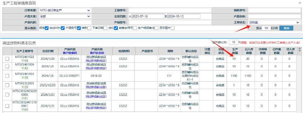 點晴模切ERP已結(jié)案的生產(chǎn)工單如何繼續(xù)做入庫操作