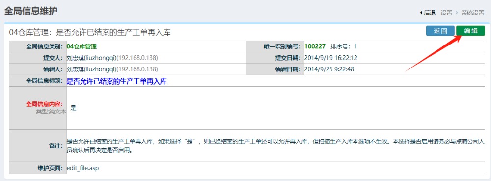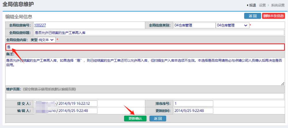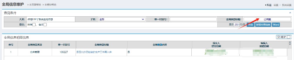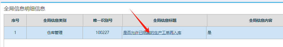 操作步驟,系統(tǒng)管理-全局信息維護(hù)(注意,這一步需用管理員賬號進(jìn)行操作) 進(jìn)入界面后,搜索“已結(jié)案”,找到“是否允許已結(jié)案的生產(chǎn)工單再入庫”明細(xì)欄,點擊對應(yīng)字樣鏈接進(jìn)入