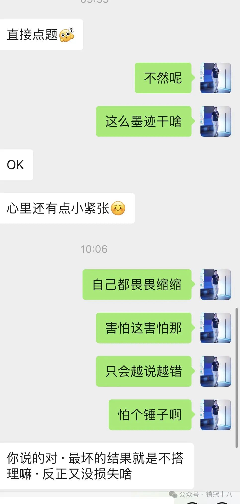 注意,是你內(nèi)心所有想說的的,最真摯最帶有情緒的話,客戶真的還有意向,一定是會回復(fù)你的。 客戶不回,是對方也還在糾結(jié)猶豫,你主動去點破尷尬就好。 比如,“我這敏感多疑的心啊,是不是不考慮咋們的xx,昨天我還信誓旦旦的和老板說,老板今天還笑我,是不是xx不想買了,又擔(dān)心直接說,直接傷了我的心,哥,你直說,我扛得住,得不到你的回應(yīng),真的比拒絕我還難受。“ 不要照搬,根據(jù)自己的情況去用。 我實習(xí)做銷售的時候,我的深夜給客戶發(fā)的話術(shù),被多名同時拿去用,都出單了,可惜沒有截圖,當(dāng)年發(fā)給客戶大概500字的小作文是真的好啊。 2、敢于把客戶往外推 人性就是賤,客戶有些也真的是賤。 你說優(yōu)惠沒有了吧,客戶會覺得你在套路他。 你一直糾纏客戶的話,客戶更加不信,沒有這個優(yōu)惠了。 作為銷售人員都知道,拿優(yōu)惠說事更多只是逼單的一種方式。 但是這么好的逼單抓手,銷售沒用戶。 你給客戶發(fā)了優(yōu)惠消息,客戶不信或者不回,那你就要學(xué)會以退為進(jìn)。 “xx,咋是不考慮這個優(yōu)惠了是吧,好的,那我就先給我其他的客戶了哈,等你考慮清楚,到時候我再幫你申請,申請不下來你也不要怪弟弟?!?/span> 發(fā)完這條,不要主動去找客戶了,不出48小時,客戶真的是很需要,想最低價的,一定會來找你的。 還有一種話術(shù)也好用,適合喜歡對比的客戶。 ”哥,我反復(fù)和老板對,做你這單虧不虧的,確實沒什么利潤,這次比較遺憾,但凡有點利潤,都不會把你往外推的?!?/span> 先退后進(jìn),是為了更好的進(jìn)攻。 3、敢于要客戶承諾 常見的。 客戶要優(yōu)惠,你反問對方,我?guī)湍闵暾埖?,你是不是可以定下來?/span> 客戶說,下次約,我看了下,我的排期,那咋們是周四還是周五方便呢? 客戶有承諾,才算有效的跟進(jìn)哈。 總之,作為銷售人員,你一定不要畏手畏腳的,擔(dān)心說錯話。 你總是害怕說錯話,你越會說錯,心理學(xué)叫自證預(yù)言。