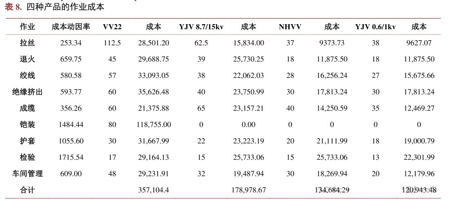 3.3 分配成本到作業(yè)活動(dòng): 將企業(yè)的間接費(fèi)用(如設(shè)備折舊、廠房租金、能源費(fèi)用等)根據(jù)成本動(dòng)因分配到各項(xiàng)作業(yè)活動(dòng)。例如: 采購(gòu)作業(yè)成本:200,000元(根據(jù)采購(gòu)訂單數(shù)量分配) 生產(chǎn)作業(yè)成本:500,000元(根據(jù)生產(chǎn)批次數(shù)量和生產(chǎn)時(shí)間分配) 銷售作業(yè)成本:300,000元(根據(jù)銷售額和銷售訂單數(shù)量分配) 管理作業(yè)成本:100,000元(根據(jù)員工數(shù)量和辦公面積分配) 3.4 分配作業(yè)成本到產(chǎn)品: 假設(shè)該電子產(chǎn)品制造廠生產(chǎn)兩種產(chǎn)品:A型和B型。根據(jù)各產(chǎn)品消耗的作業(yè)活動(dòng)和成本動(dòng)因,將作業(yè)成本分配到產(chǎn)品上。例如: A型產(chǎn)品: 采購(gòu)作業(yè)成本:80,000元 生產(chǎn)作業(yè)成本:250,000元 銷售作業(yè)成本:150,000元 管理作業(yè)成本:50,000元 總成本:530,000元 B型產(chǎn)品: 采購(gòu)作業(yè)成本:120,000元 生產(chǎn)作業(yè)成本:250,000元 銷售作業(yè)成本:150,000元 管理作業(yè)成本:50,000元 總成本:570,000元 3.5 計(jì)算每單位產(chǎn)品成本: A型產(chǎn)品的總產(chǎn)量為1,000件,每單位成本為: 每單位成本=530,000元/1,000件= 530元/件 B型產(chǎn)品的總產(chǎn)量為2,000件,每單位成本為: 每單位成本=570,000元/2,000件= 285元/件 4、某電纜企業(yè)(上市公司) 4.1 背景介紹:原來(lái)采用的成本核算方法是定額法。 基本流程是:生產(chǎn)部門負(fù)責(zé)成本的核算和控制,財(cái)務(wù)部門負(fù)責(zé)數(shù)據(jù)匯總和分析,基本步驟: