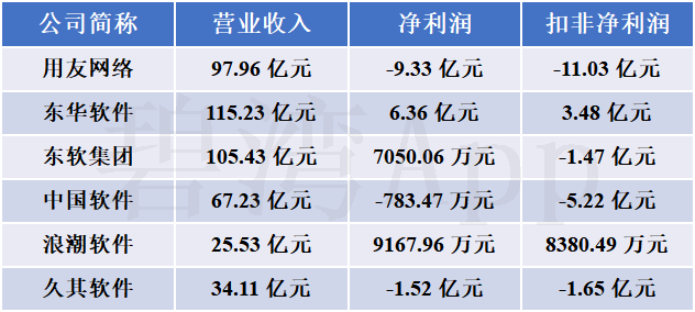 通過(guò)年報(bào)我們可知,東華軟件是2023年凈利潤(rùn)最多的公司,除此之外,它還是全年?duì)I收最高的公司,為115.23 億元。用友網(wǎng)絡(luò)是2023年扣非凈利潤(rùn)最低的公司,為-11.03 億元。
