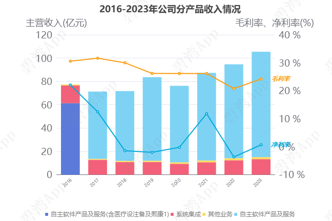 2023年公司的營(yíng)收主要由以下三塊構(gòu)成,分別為智能汽車互聯(lián)、醫(yī)療健康及社會(huì)保障、企業(yè)互聯(lián)及其他。其中自主軟件、產(chǎn)品及服務(wù)為第一大收入來(lái)源,占比85.69%。