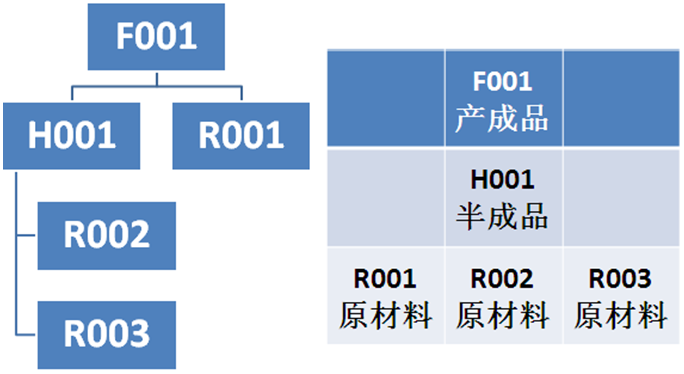 Ø 可以按照差異的大小,發(fā)送警告或錯誤消息。 Ø 當產(chǎn)生循環(huán)bom時,系統(tǒng)可以自動處理。舉例說明循環(huán)bom,如下圖所示: