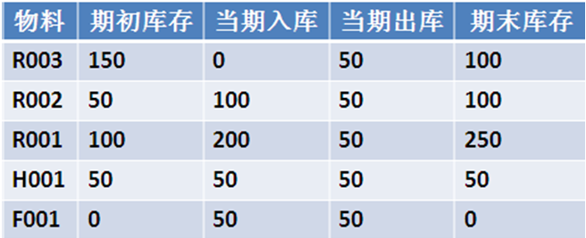 這5個物料當月進銷存情況如下: