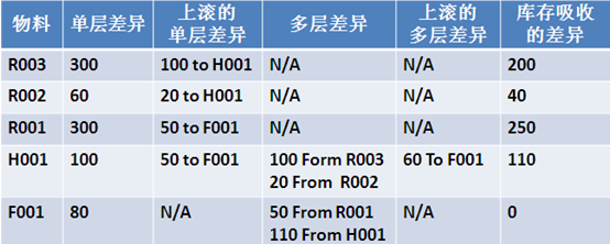 第四步:計算物料自身差異(計算單層差異)。