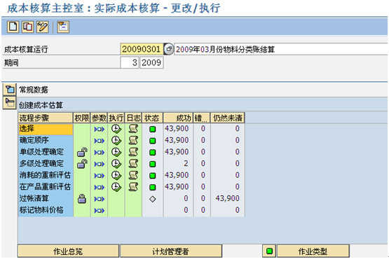 物料分類帳月結(jié)流程 物料分類帳的結(jié)算主要通過9個步驟執(zhí)行,事務(wù)代碼CKMLCP,如下圖所示: