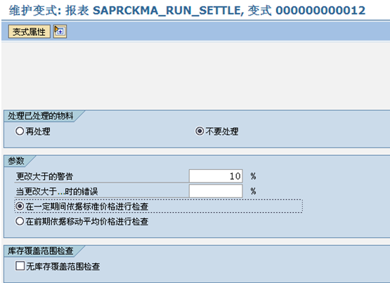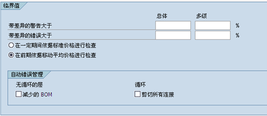 Ø 如果已經(jīng)執(zhí)行過這一步,建議選擇“不要處理”來跳過部分沒有價格變動的物料; Ø 當單層差異導(dǎo)致物料實際成本改變過大時,可以定義警告及報錯信息,及時了解價格變動幅度較大的物料; Ø 計算價格的基準可以是物料的標準價格,也可以是物料月末的移動平均價。